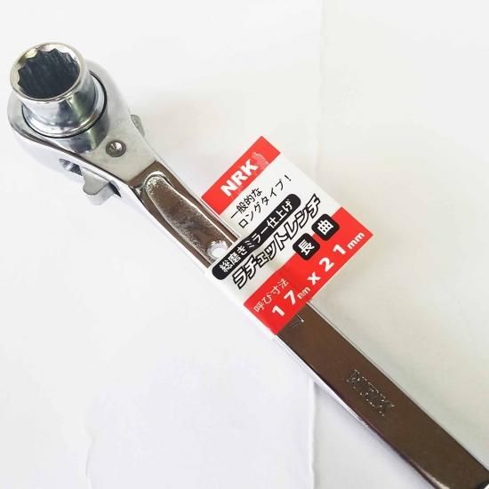 NRK 総磨きミラー仕上げ ラチェットレンチ 17x21 長曲 NRK-長曲