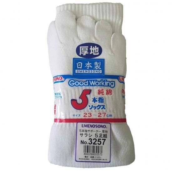 日本製靴下 梅乃園 3257 厚地 五本指 純綿 サラシ 5足組 3257